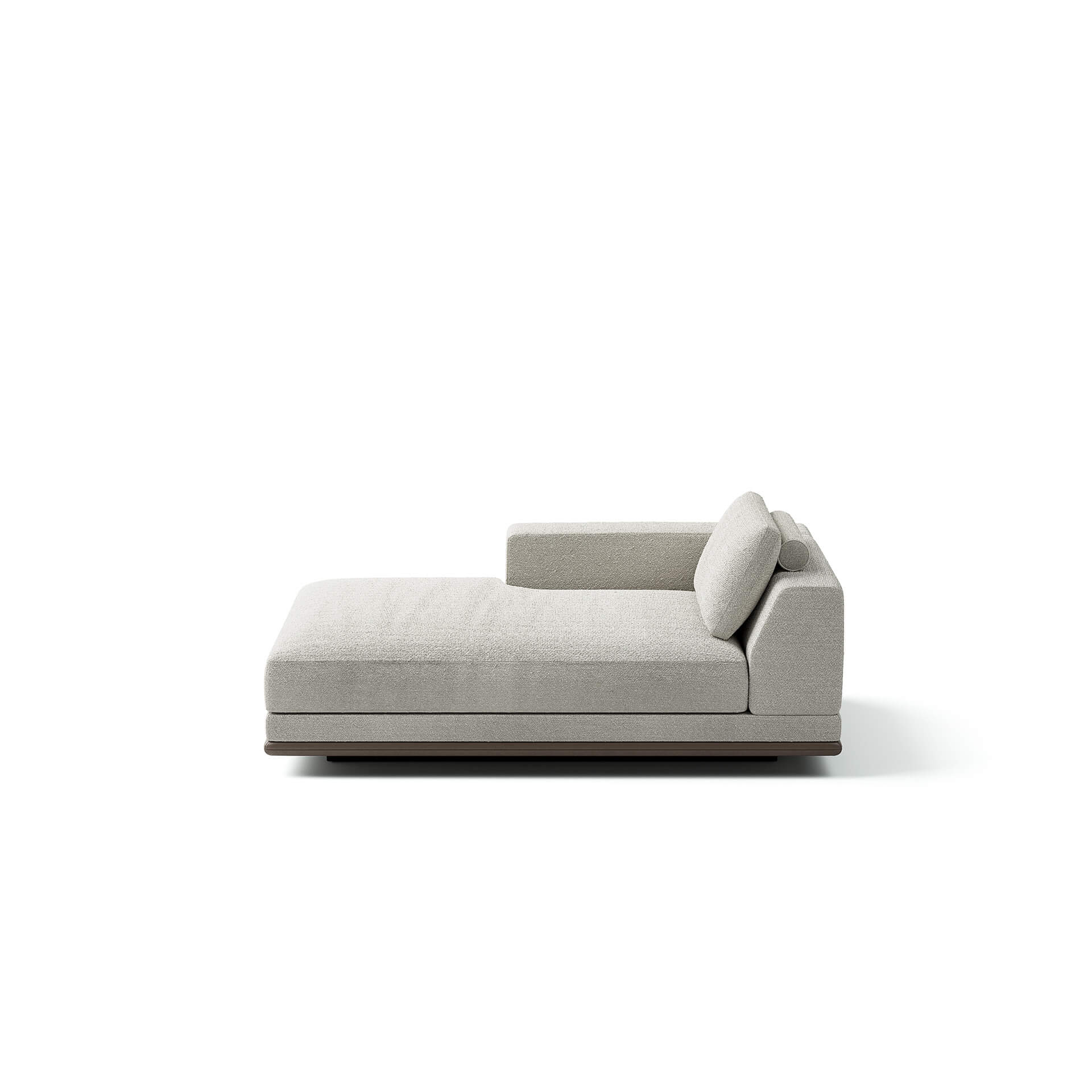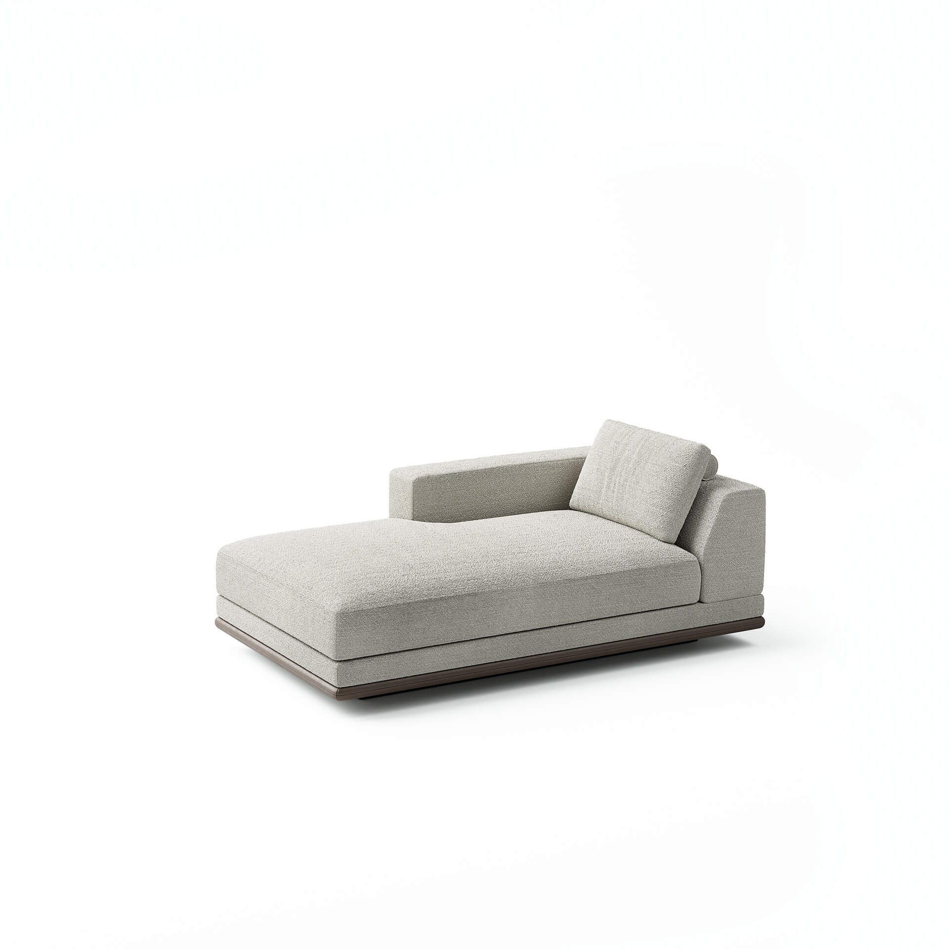 Structure in wood. Padding with variable-density foam. Removable seat and back cushions, backrest in regenerated goose down. Base in dark wood.