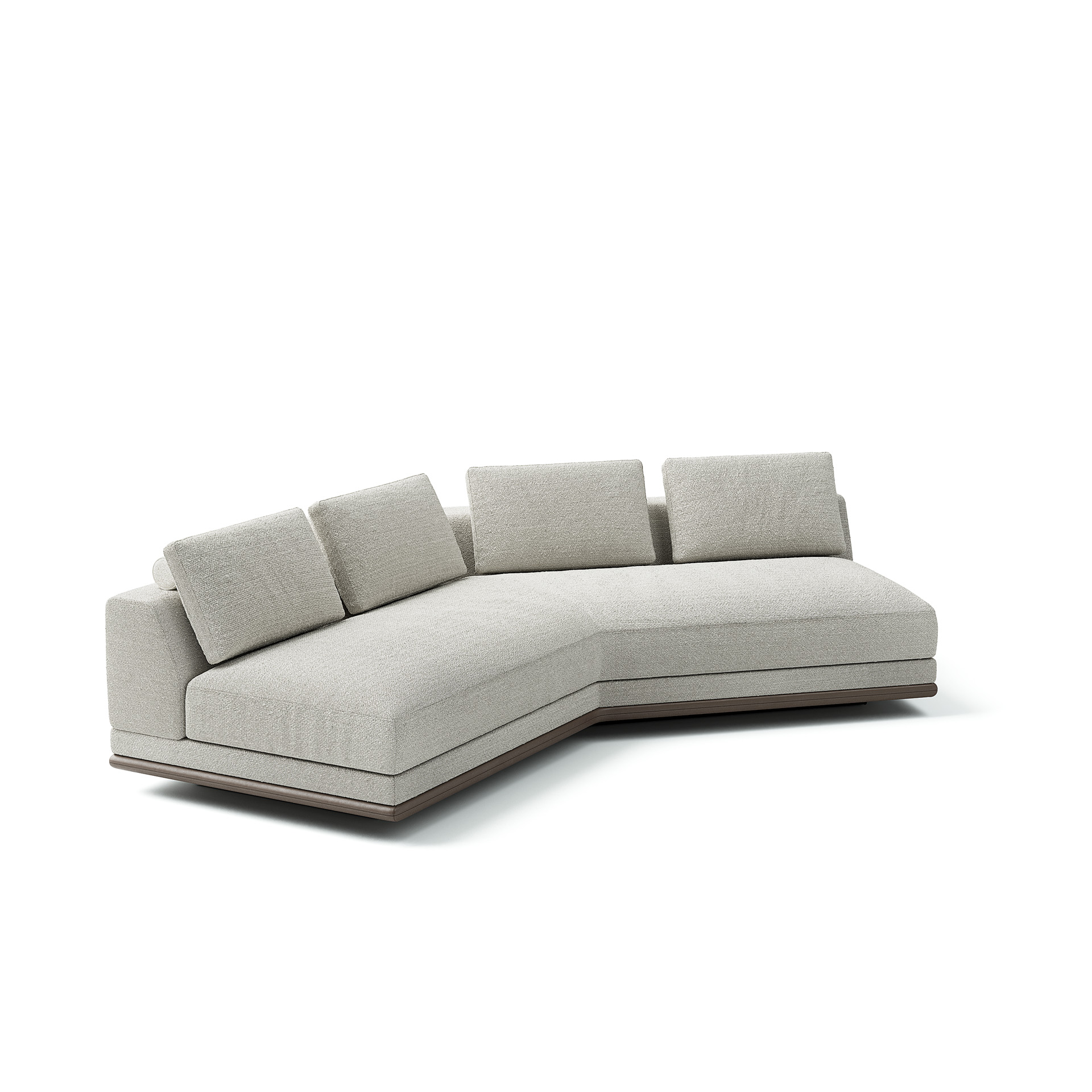 Struttura in legno. Imbottiture con schiumati a densità variabile. Cuscini seduta e schienale sfoderabili, schienale in piuma d’oca rigenerata. Base in legno scuro.